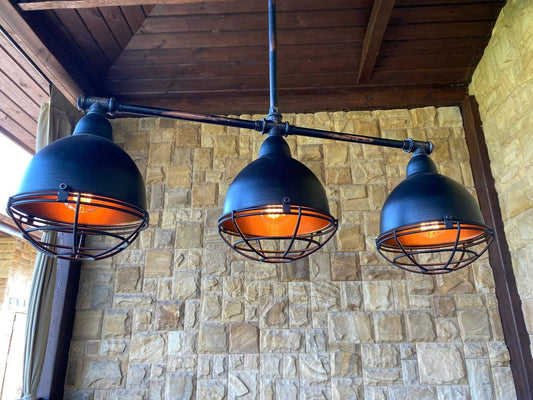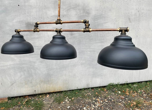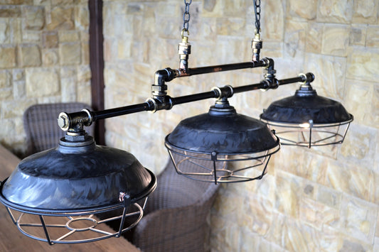 Long industrial rustic hanging kitchen chandelier. Hanging light for billiard table.