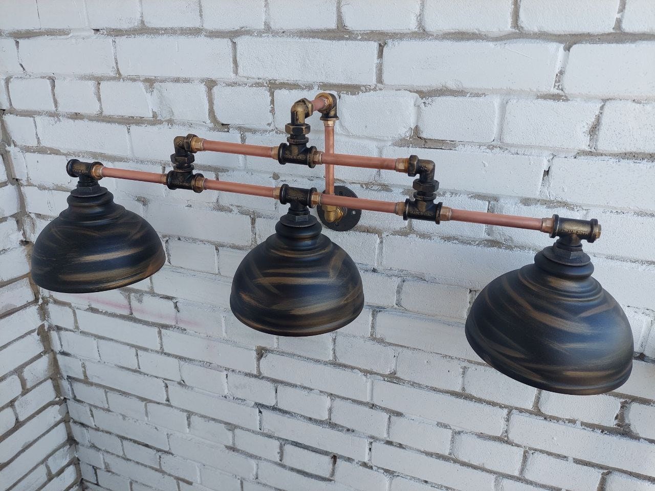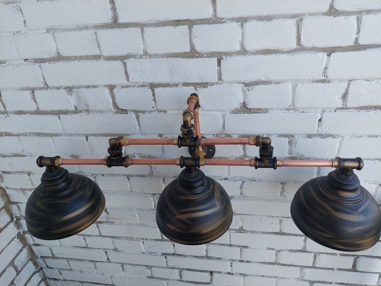 Copper tubing, brass tees, high quality, retro lampshade.